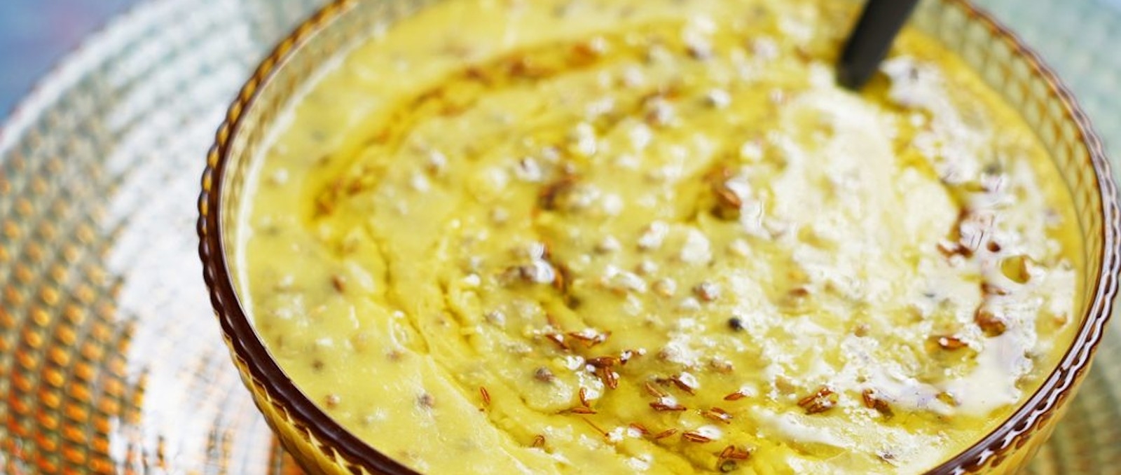 - Heat a pan with ghee and temper with cumin seeds and asafoetida. Switch off the flame and add turmeric to it.