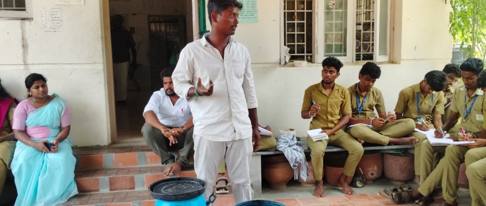 We were delighted to host around 64 enthusiastic students and 2 faculty members from Aravindhar Agricultural Institute of Technology at the Bhoomi Farmers’ Centre in Tiruvannamalai.